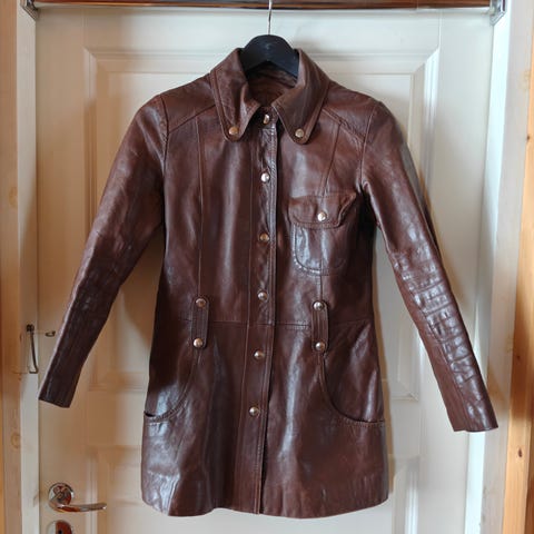 Moitteettomassa kunnossa oleva vähälle käytölle jäänyt Turkista hankittu naisten pehmeä tummanruskeanahkainen vuorellinen ja huppullinen (irrotettavissa vetoketjulla) polvipituinen nahkatakki. Koko S, mutta sopiva myös M-kokoiselle (väljä malli). Takilla tarkenee pikkupakkasellakin.