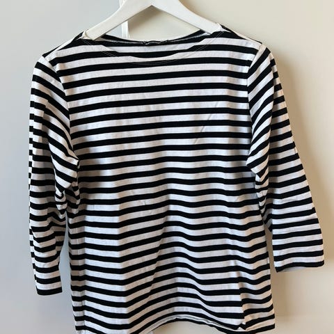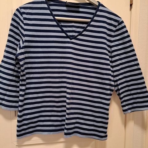 Pitkähihainen, tummansininen trikoopaita, jossa edessä painettuja kukkakuvia. Koko L. Mitat: leveys kainalosta kainaloon noin 59 cm, pituus kaulan juuresta mitattuna noin 68 cm hihan pituus noin 51 cm. Erinomainen kunto.
