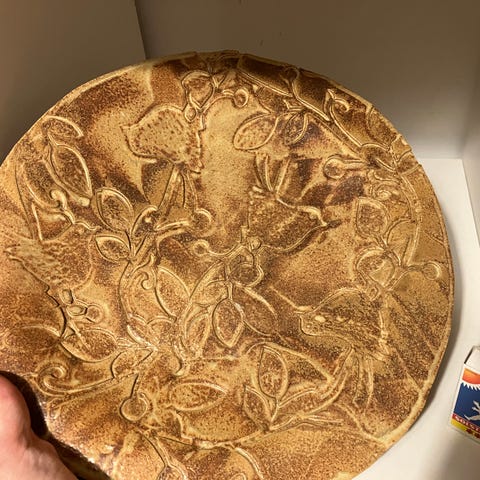 Kuvan kauniisti muotoillut tarjoiluastiat. Vaaleat laakea lautanen ja kulho ovat painavaa savikeramiikkaa.Lautasen halkaisija on 30cm ja kulhon hakaisija 23cm. Hp yht 30e, nouto Tuusula Jokela tai postitse