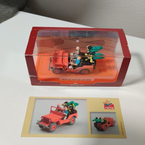 Tintin auto Willys jeep 1943 kirjasta mustan kullan maa punainen sarja Valmistaja Moulinsart Belgia.