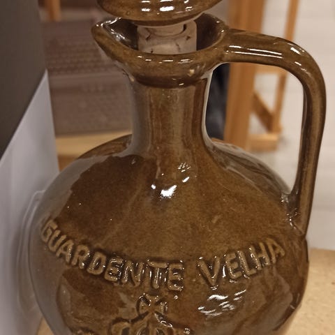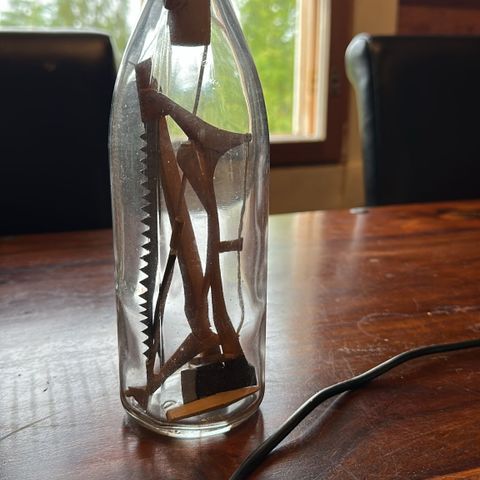 Jos löytyy sopiva korkki niin menisi vaikka viskidekanterina. Tälläisenaan koristeena.