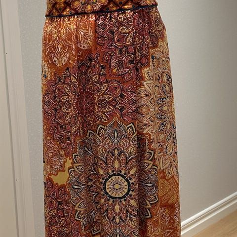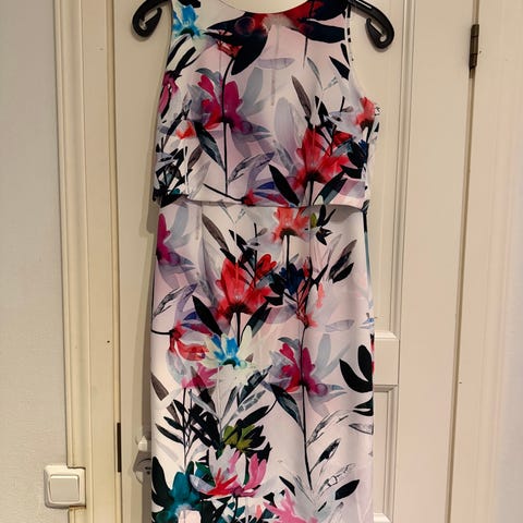 Myydään kuvassa oleva Wallis mekko. Pohjaväri on tummansininen. Kangas joustaa. Kokolapussa lukee 44, mutta pienennetty kokoon 38. Kaunis kukkakuvio. Kai-kai mitta on n. 51 cm ja kainalo-helmapituus n. 69 cm. Helmaa on lyhennetty hiukan.