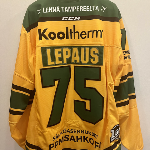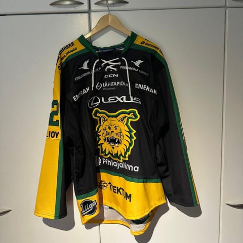 Myydään hyväkuntoinen Otto Koivulan kaudella 2017-18 käyttämä Ilves game worn -pelipaita. Paidasta löytyy helmaan ommeltu aitoustodistus, liiga patch & fight strap. Wearia löytyy hieman ainakin toisesta hihasta ja paidan helmasta. Koko on XXL.