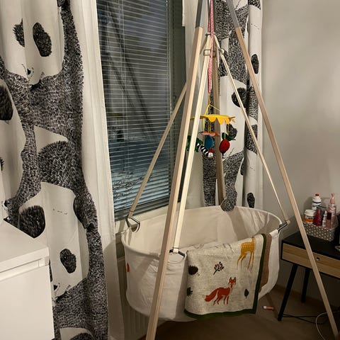 Ihana Leander kehto. Hyväkuntoinen mutta parissa kohtaa kankaassa pienet nirhaumat, jotka ei pistä käytössä silmään. Patja ja petari siistit, aina ollut käytössä patjansuojus. Meillä ollut kattoon kiinnitettynä.