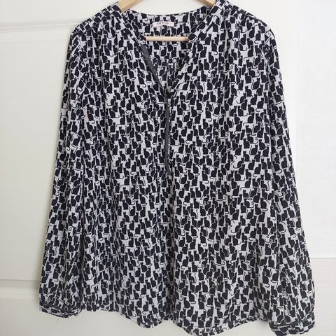 Musta-harmaa-valkoinen kukkakuvioinen paita. Koko 40. Olka-helma n. 55. Kainalo-kainalo n. 42, joustaa n. 15cm. Uudenveroinen. 3e. Myynnissä myös muualla.