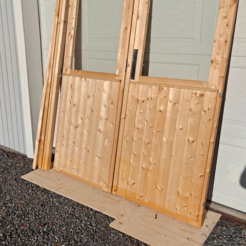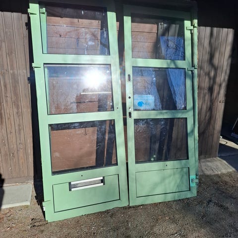 Rautarunkoiset pariovet, 2,6x2,6 m, pientä laittoa. Hint sisältää arvonlisäveron.