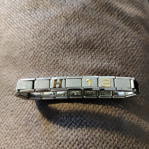 Laadukkaista lasihelmistä kudottu rannekoru. Itsetehty Mikkelissä. Lukko ja säätöketju ovat ruostumatonta terästä. Tekstilaatta on korumetallia. Korun leveys on 1,1 cm ja säädettävä pituus 13-17 cm. Haku Mikkelin keskustasta.