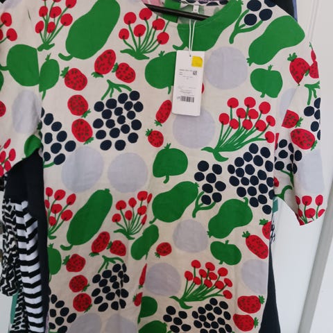 Marimekon hihaton pellavapaita, koko 38. Kokomerkintää hieman pienempi. Suunnittelija Mika Piirainen. Kunto hyvä.