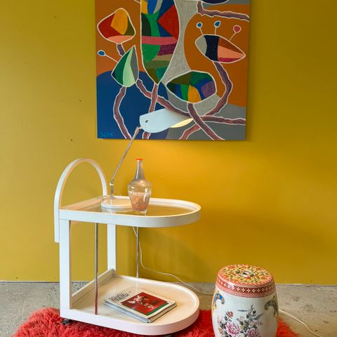 Design Engström Myrstrand tarjoilupöytä pyörät kuluneita