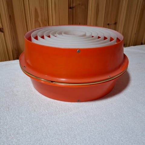 Todella tyylikäs ja ajaton.Halkaisija 50 cm. korkeus 13 cm.Häikäisysuoja huurrelasia,korkeus säädettävissä max. 80cm.Valolähteeksi sopivat LED-polttimot 4xmax.40W E27. Suunniteltu kiinteään asennukseen,rasia kiinnitys. Vaijeria 90 cm.Nouto Hirvaskankaalta