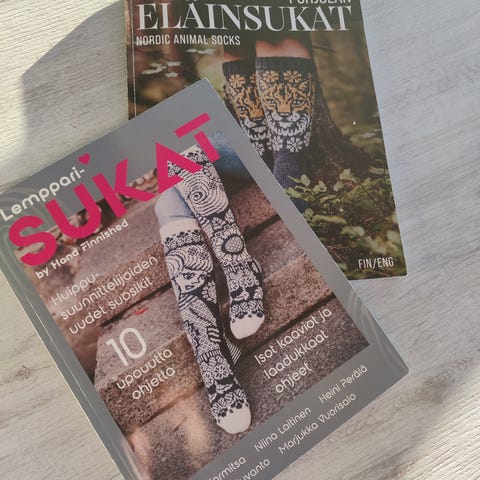 Kaksi käsityölehteä, aiheena sukat