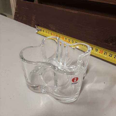 Suunnittelija Tiina Nordström, vuodelta 1994. Myynnissä tuikkulyhty, jonka korkeus on 9,7 cm ja halkaisija noin 9 cm. Täysin ehjä ja hienokuntoinen.
