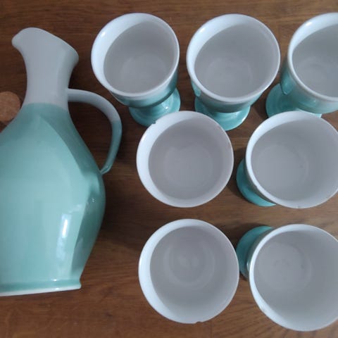 6 kpl pikareita iridisoitua lasia+aluslautanen