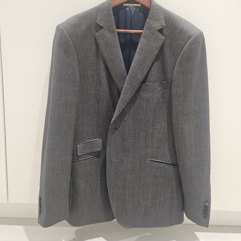 Myydään uusi miesten Gap -bleiseri, materiaali on joustavaa, ryhdikästä tummansinistä denimiä, jossa 60% puuvillaa, 15% lyocellia, 14% polyesteria ja 11% elastaania. Jakussa on vuoritetut hihat sekä puolikas vuori miehustassa. Kainalo-kainalomitta 61cm, olka-helmapituus 79cm.