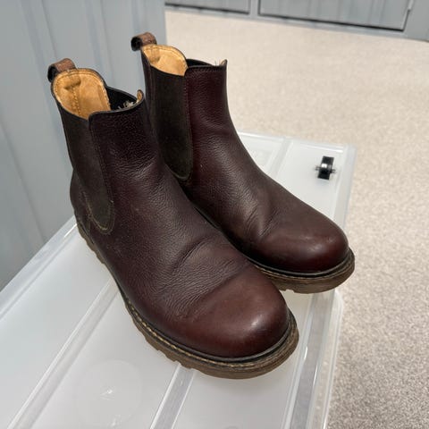 Kuvan mukaiset saappaat. Ei ole päässyt käyttöön. Kantalaput uusittu jossakin vaiheessa edellisen omistajan toimesta.
