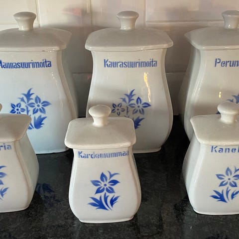 Myydään Arabian purkit, olleet vain koristeena. Hinta 30 euroa kpl, nouto tai postitus, jolloin kulut lisätään hintaan.