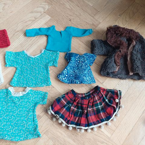 Vauvan tai nuken puseroita ja hame, koot 60-80, 1970/80-luvulta.