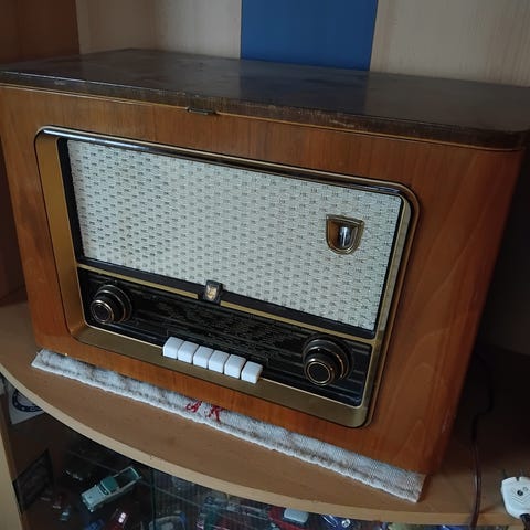 Vanha hornyphon putkiradio 40-luvulta toimivana jäänyt hyllyyn korjattu ja vaihdettu putkia