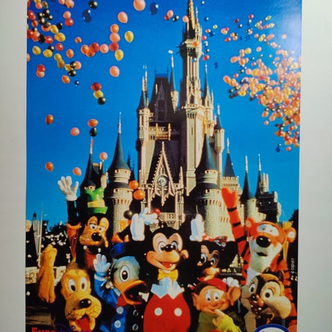 Euro Disney Paris -juliste, 30 cm x 42 cm, ollut säilytyksessä rullalla, yksi pienen pieni repeämä reunassa muutoin ehyt ja siisti. Lähetys postitusputkessa ja toimituskulut lisätään, ei toridiiliä.