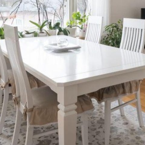 Korkeakiiltoinen valkoinen jykevä ruokapöytä ostettu Vepsäläisestä. 2 kulmassa pientä jälkeä (mitkä saa spaklattua)ja kannessa on pieniä käytön jälkiä. Uutena noin 2600€.Nouto Sarfvikistä, maksu mp tai käteinen