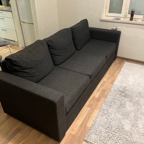 Pehmusteiden printti on hieman haalistunut ja ainakin yhdestä patjasta vähän revennyt, mutta muuten sohva on todella hyvässä kunnossa.