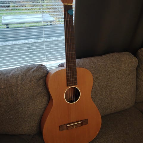 Käsintehty 2- kielinen todella nätti laatikkokitara. Hyväkuntoinen.