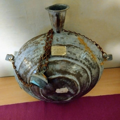 2kpl messinki/kupari (lejeerenki) lampettia.Kork. n. 42cm leveys yläpäästä n. 27cm ja paino a.n. 2kg. Myydään molemmat yhdessä. (a`90)