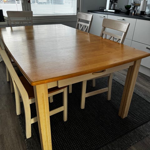 Keloa pöytä ja 5 jakkaraa