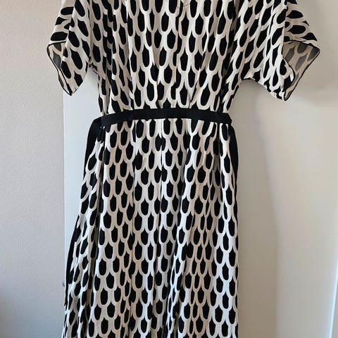 Marimekon mekko takaapitempi pyöristetty helma. Paksua puuvilla 56/44polyester. Miellyttävä kangas päällä. Hinta 75€+postikulut. Koko 40. Kai-Kai 50