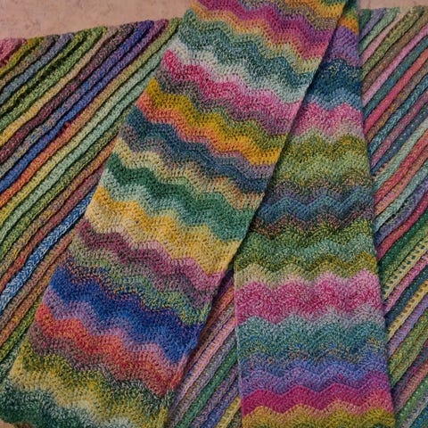 Villalangoista virkattu, käsintehty päiväpeite. Uniikki. Aloitettu tekemään 15.1.2024 ja valmistui 2.7.2024.