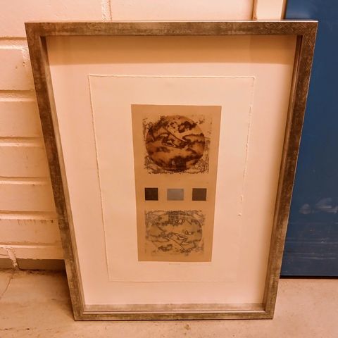 Teoksen alla merkintä tpl'a eli kyseessä taiteilijan itsensä tekemä vedos. Lisäksi numerointi 1/1, teksti Monotypia, teoksen nimi sekä taiteilijan signeeraus ja vuosi -85.