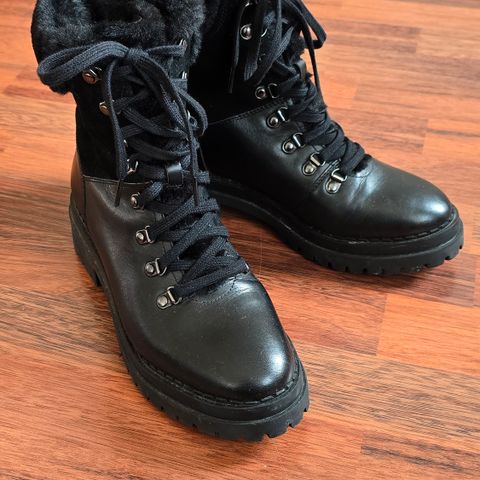 Nahkaiset varsikengät comfort eli joustava ja pitävä pohja, vetoketjut molemmilla sivuilla, ohuehko kangas sisällä, joten ei hirmu pakkasille. Koko reilu, ei ole kapealestiset, sisämitta 27cm. Todella hyväntuntuiset jalassa, kerran testattu, tilasin pienemmät ja nyt nämä isot myyntiin ovh. 124. Näillä jaksaa seistä koko pv!