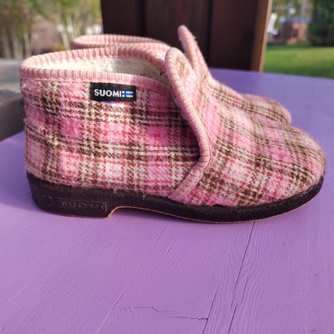 Myydään uutena ostetut ja erittäin vähän käytetyt ruskeat korvalliset tohvelit. Sisämitta n. 19cm.