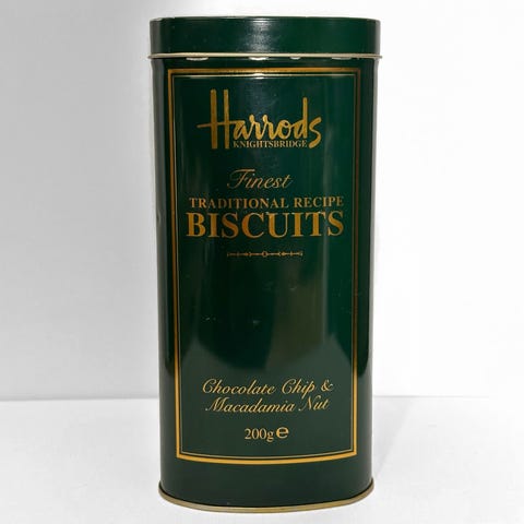 Harrodsin pyöreä kannellinen peltipurkki/säilytysastia. Korkeus 17 cm, halkaisija 8 cm. Kunto kuin uusi. Valmistettu Englannissa. Eläimetön ja savuton koti. Postitus onnistuu.