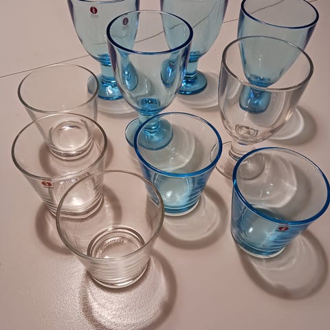 Myydään kauniit Iittalan lasit 4 kpl. ( vanhempaa tuotantoa ) laseissa Iittalan tarrat.