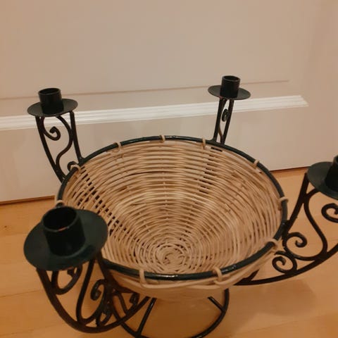 2 kpl metallilankaisia koreja.Korkeus 19 cm, halkaisija 23 cm.