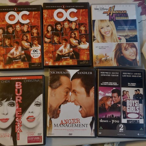 Kolme elokuvaa dvd-levyillä.