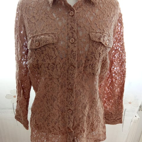 Kaunis loivasti A-linjainen lyhythihainen musta Indiskan pitsipaita.