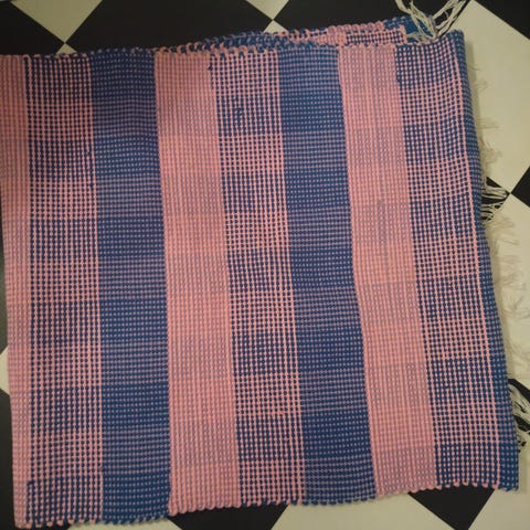 Uusi räsymatto 295 cm x 81 cm trikoosta. Väri vaaleanharmaa, valkoinen ja hento vaaleanpunainen.