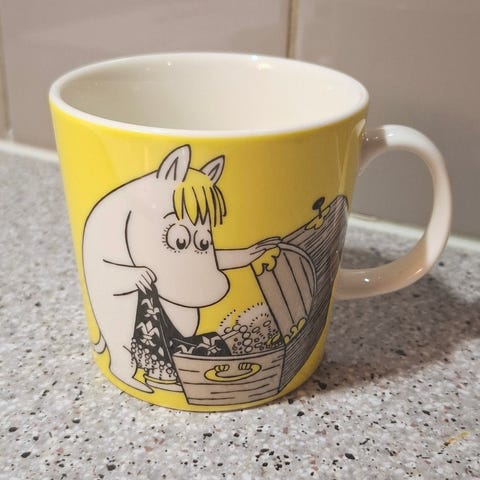 Myydään tarraton, mutta uutta vastaavassa kunnossa oleva keltainen Niiskuneiti muki.