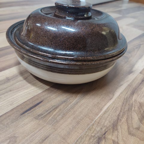 Ethän tingi. Kermansaven korkeampi uunivuoka uuni astia, sopii myös mikroaaltouuni ja pakastin käyttöön. Tällä tehty uutena 40 vuotta sitten pari juustokohokasta. Muuten ihmetellyt pölyä keräten maailman menoa alakerran kaapissa.