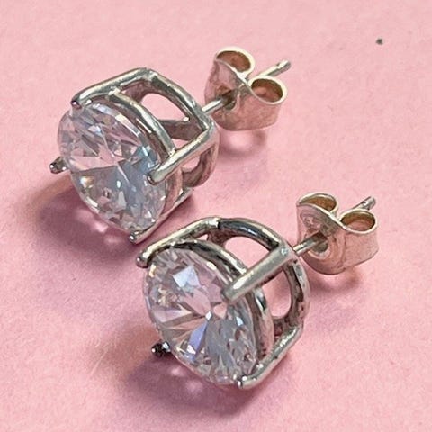 5. Kauniit hopeoidut korvakorut noin 27 x 12 mm, värittömät soikeat kivet, myös lisäkuvassa 3 €