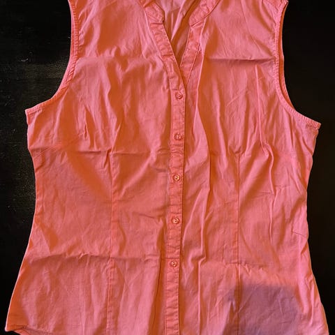 Punainen/musta lyhythihainen pusero, edessä kopristenapit/ rypytys.