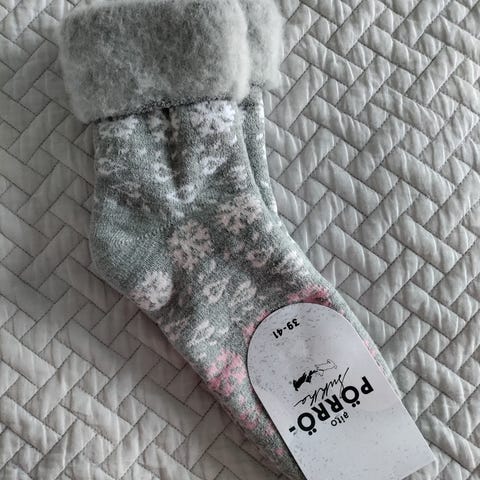 Jarrulliset pörrösukat, mitta 24, käyttämättömät, kaapissa lojuneet, käy miehelle tai naiselle, hinta noudettuna 5e, myynnissä muuallakin, ei toridiiliä