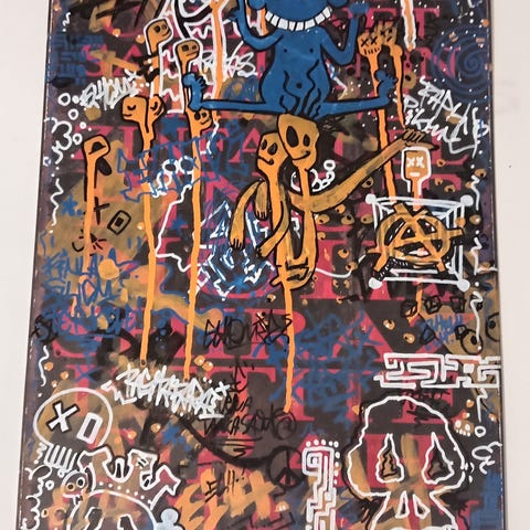 Grunge/gootti henkinen A3 maalaus lepakkopehmoeläimestä.