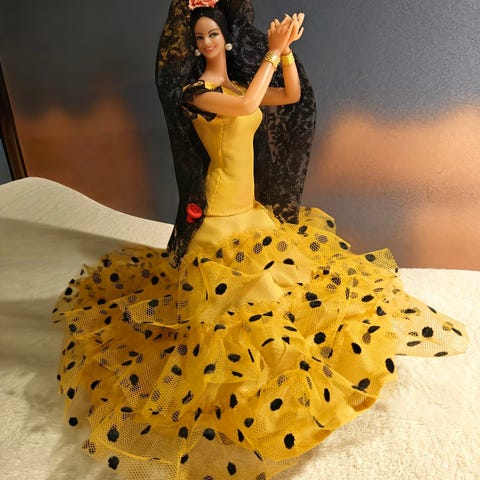 Hinta postitettuna 15 euroa. Kaunis punamekkoinen flamenco tanssija nukke ja kitara,