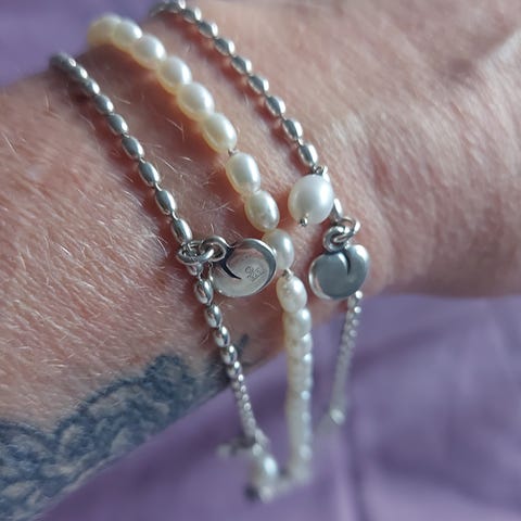 Kalevalan Vanamo rannekoru vaaleanpunaisilla helmillä joka ajan saatossa haalistunut enemmän harmaan väriseksi. Rasiaa ei ole.