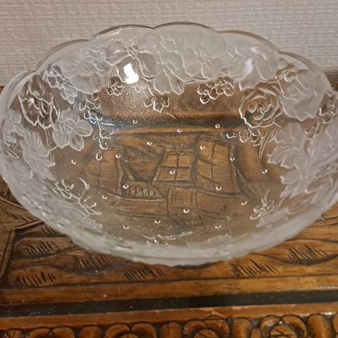 Pioni lasikulho. Korkeus 10cm ja halkaisija 20cm. Ehjä.
