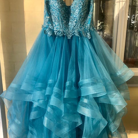 Myydään loistokuntoinen mekko, joka on pienennetty alkuperäisestä koosta 42 noin kokoon 38. Mekon helma on täyspitkä 176 cm pitkälle matalissa kengissä, helma on lyhennettävissä helposti.