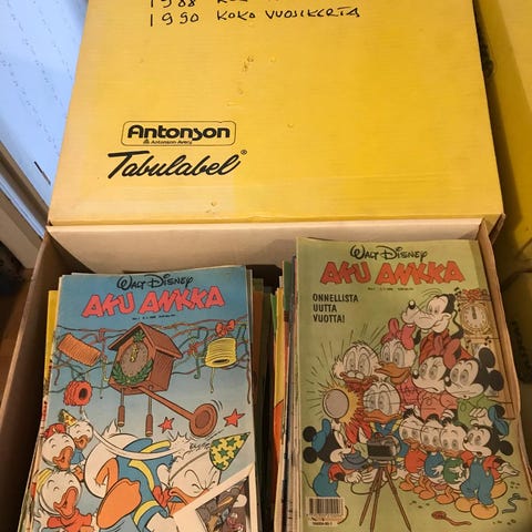 Myydään Aku Ankan täydet vuosikerrat 1990, 1992, 1993, 1994, 1996 ja 1998.